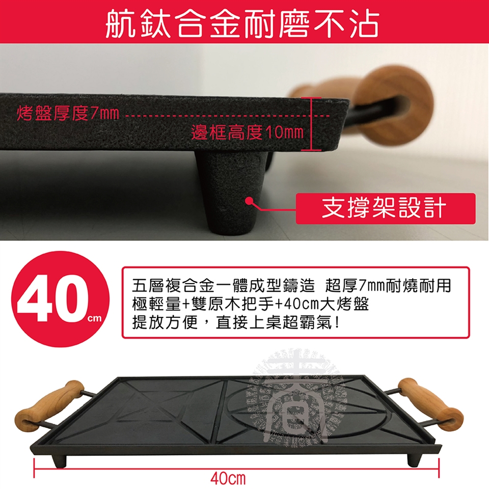 材質: 航鈦合金,備長炭遠紅外線元素多層複合金強化處理