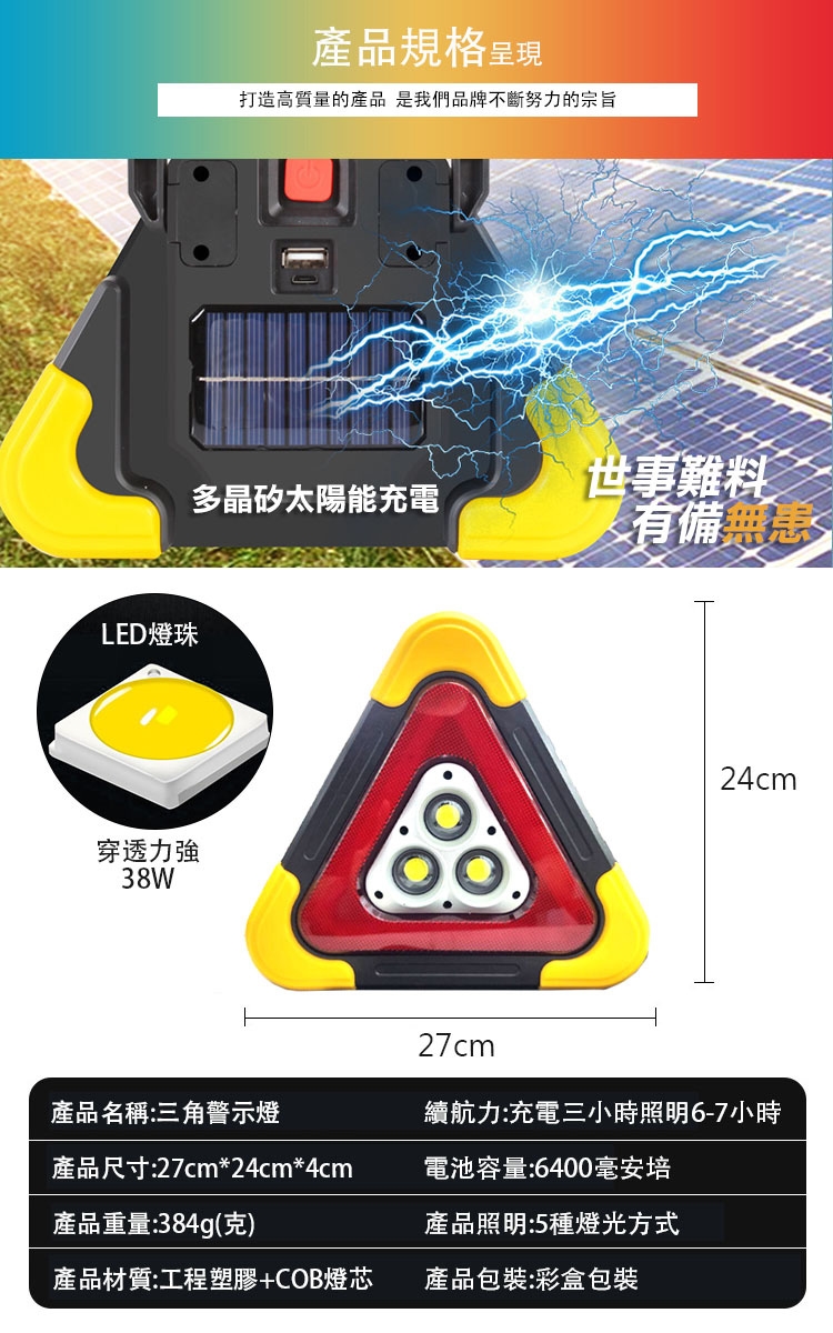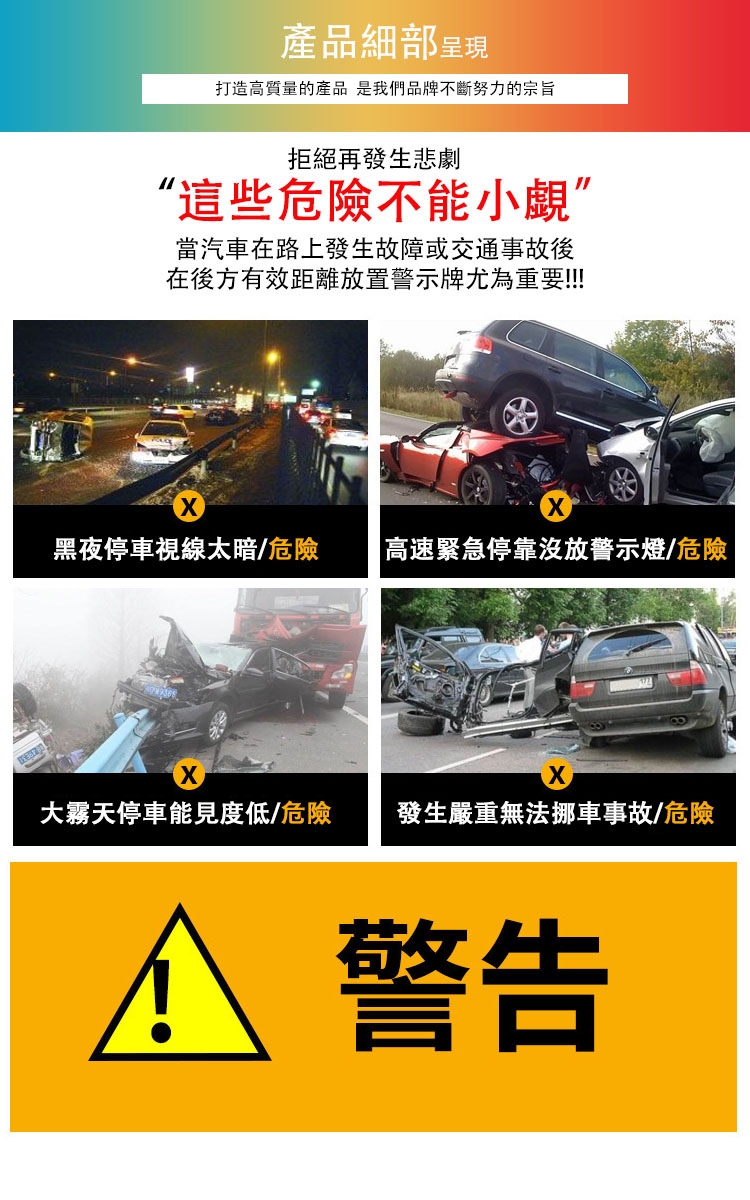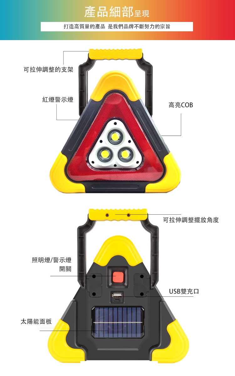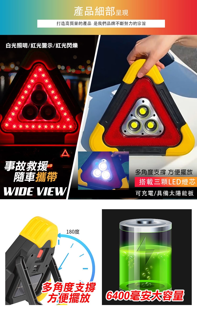 【WIDE VIEW】COB三燈LED三角警示燈(太陽能充電 汽車故障警示燈 三角警示牌 車禍三角架/ST-1101L)