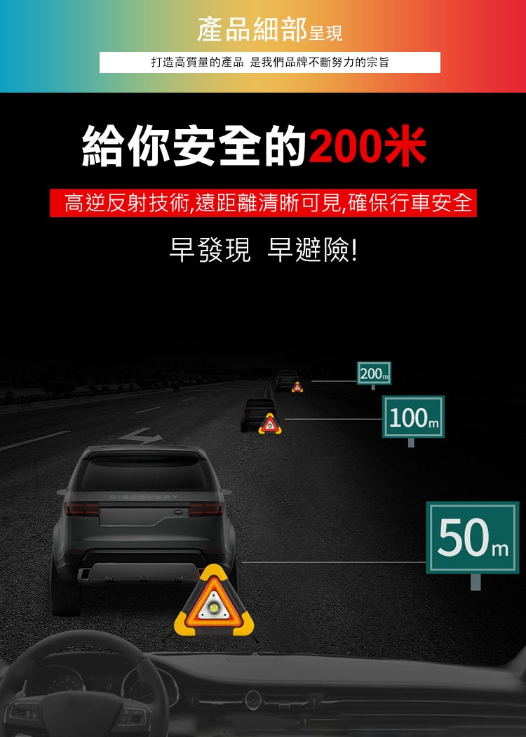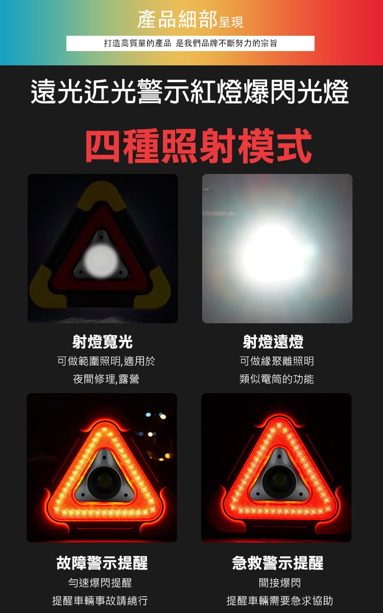 01.具備五種模式亮燈(COB高亮燈珠強/弱長亮 LED警示燈長亮/閃爍/間歇閃爍)