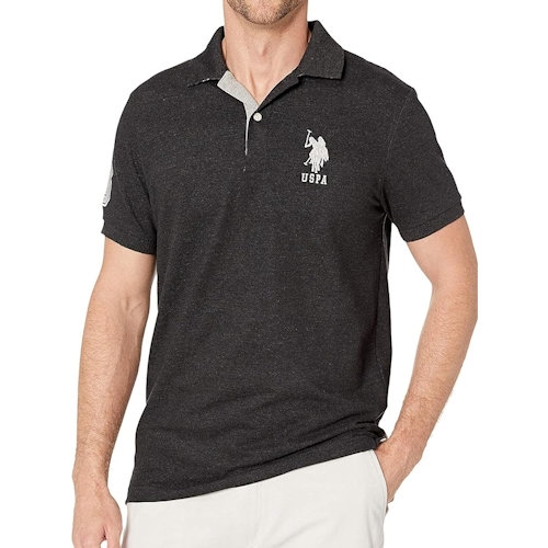 【US POLO】2025男時尚全棉大馬球標誌合身黑色短袖POLO