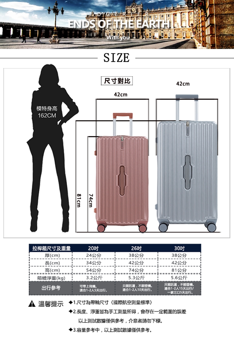 ※ 請勿用拉桿將箱子提起,提起箱子時請用上方或側面的把手;拉桿適用於配合輪子拖行時使用。