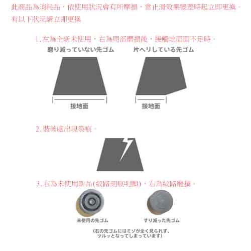 此商品為消耗品,依使用狀況會有所摩損,當止滑效果變差時起立即更換。