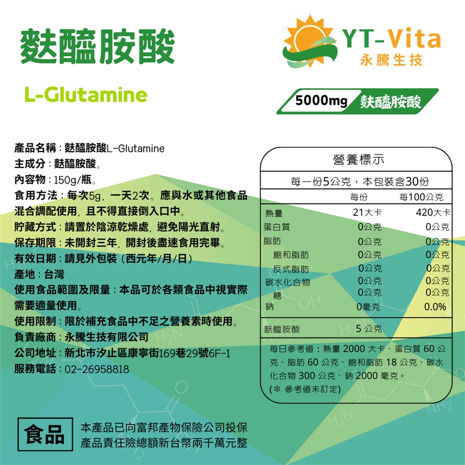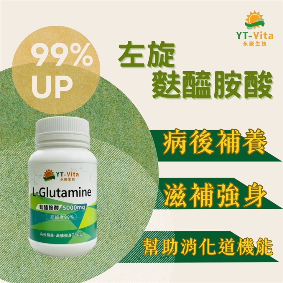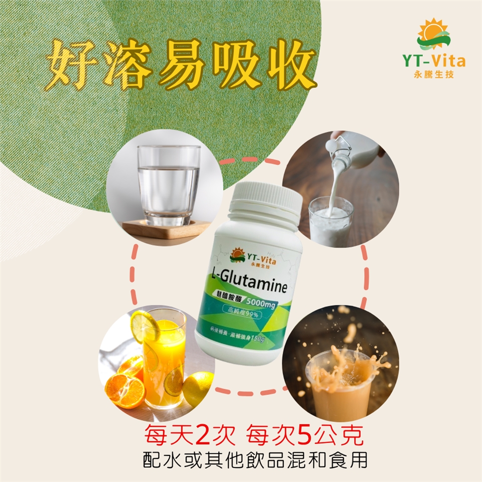 ✔ 高純度99%麩醯胺酸(L-Glutamine),或稱左旋麩醯胺酸,經葡萄糖發酵製成