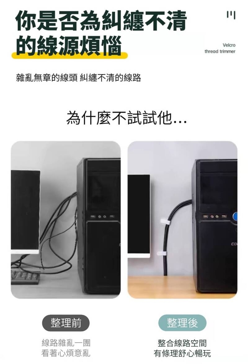 🔌 方便快捷:無需繁複的剪裁,不再浪費時間在尋找剪刀上,我們的電線管理器隨時黏隨時用。只需將其貼在需要整理的地方,即刻完成固定,讓您的電線整齊有序。