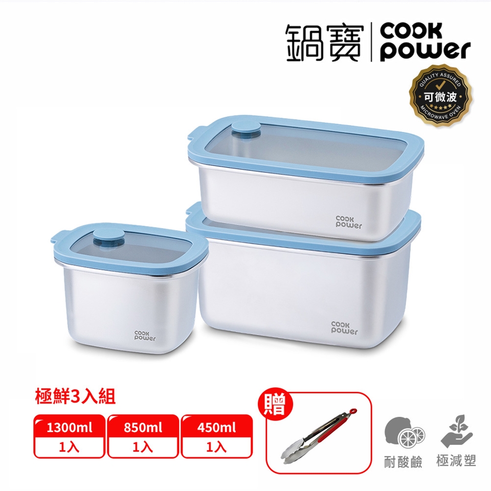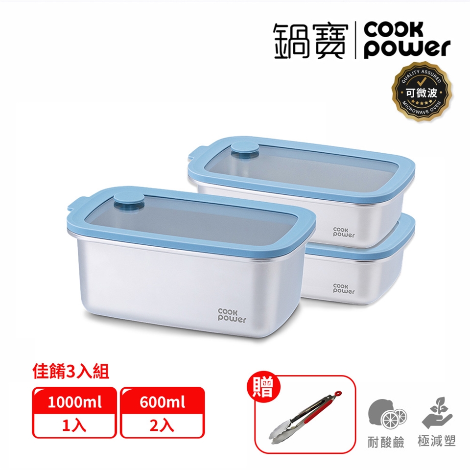 【CookPower 鍋寶】鮮盾pro系列可微波不鏽鋼保鮮盒組合