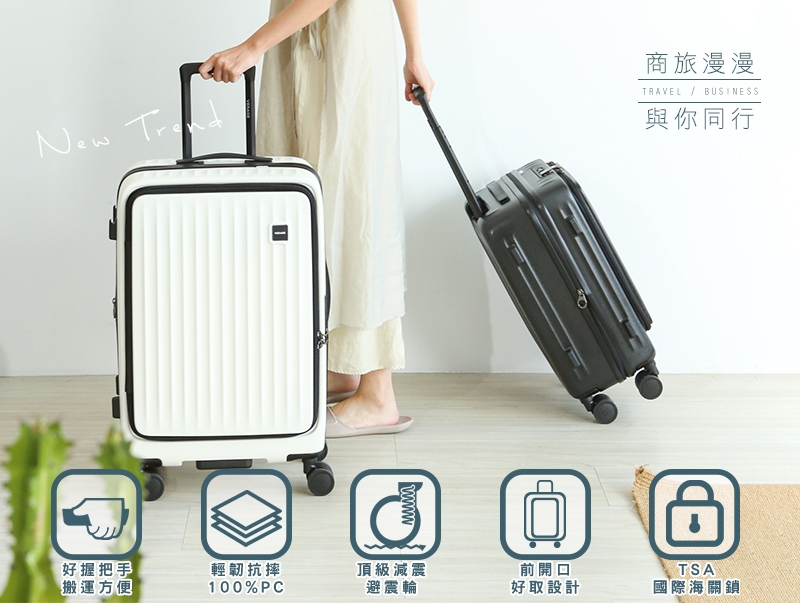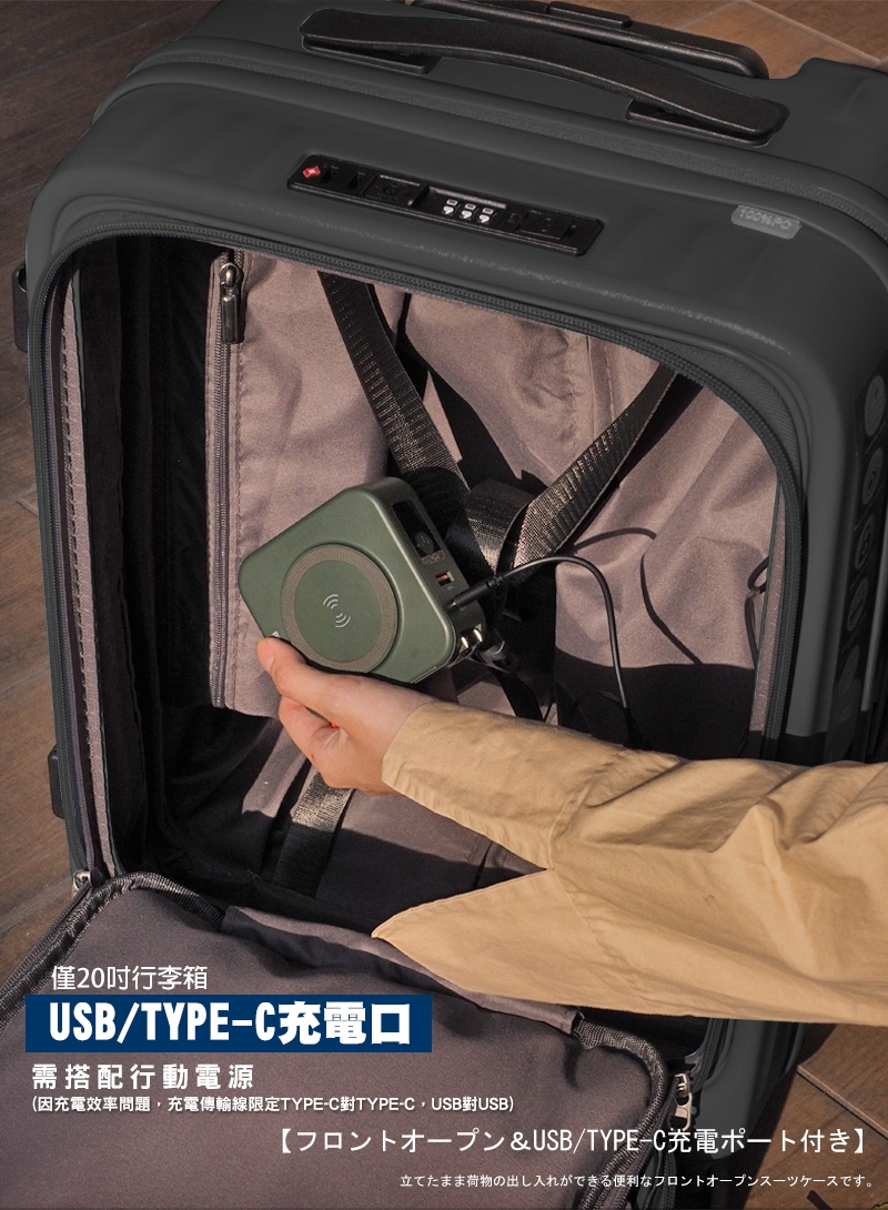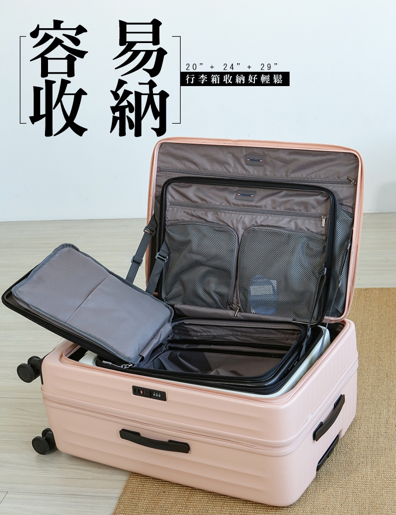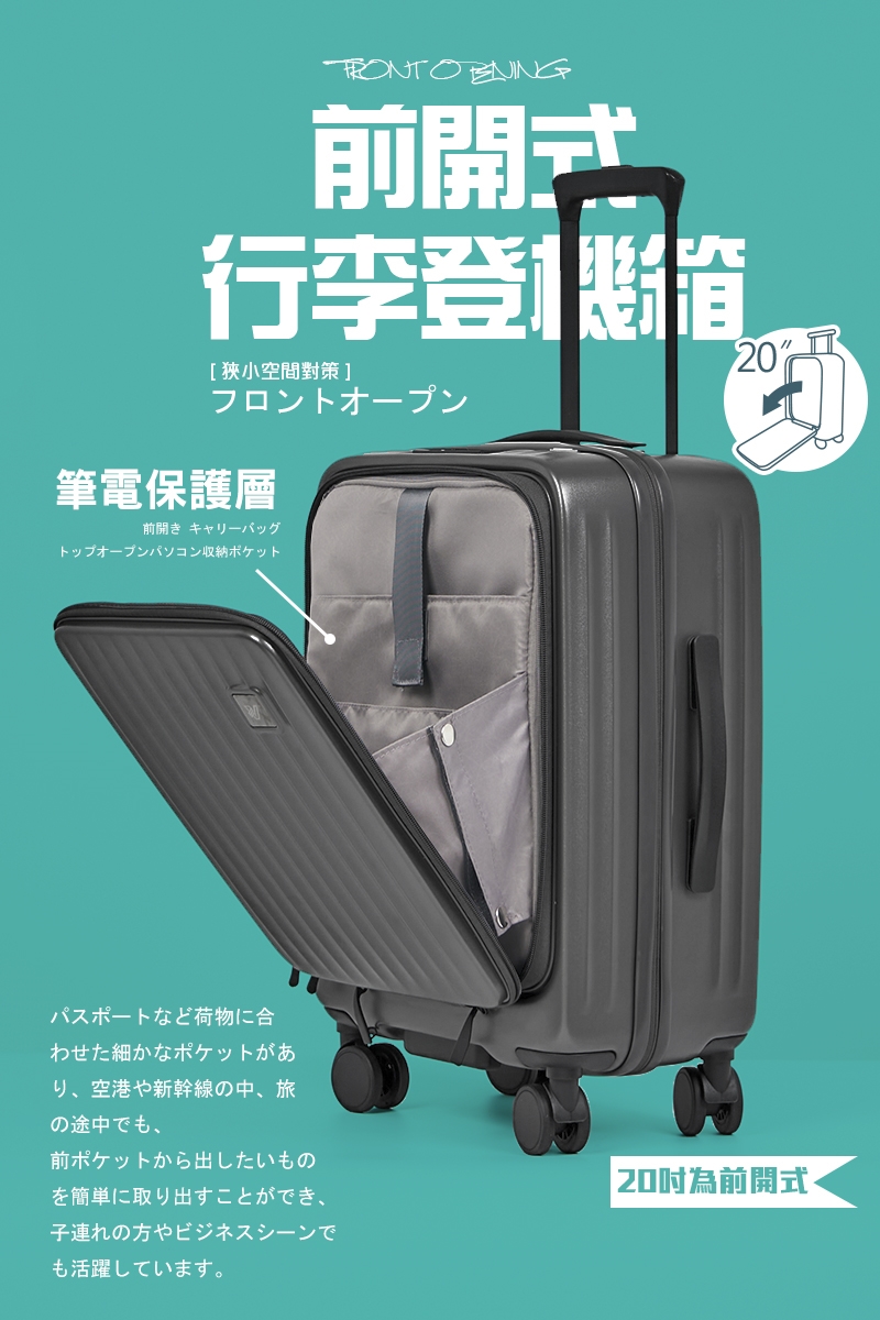 ● 前開式登機箱,平板、筆電夾層好收好拿