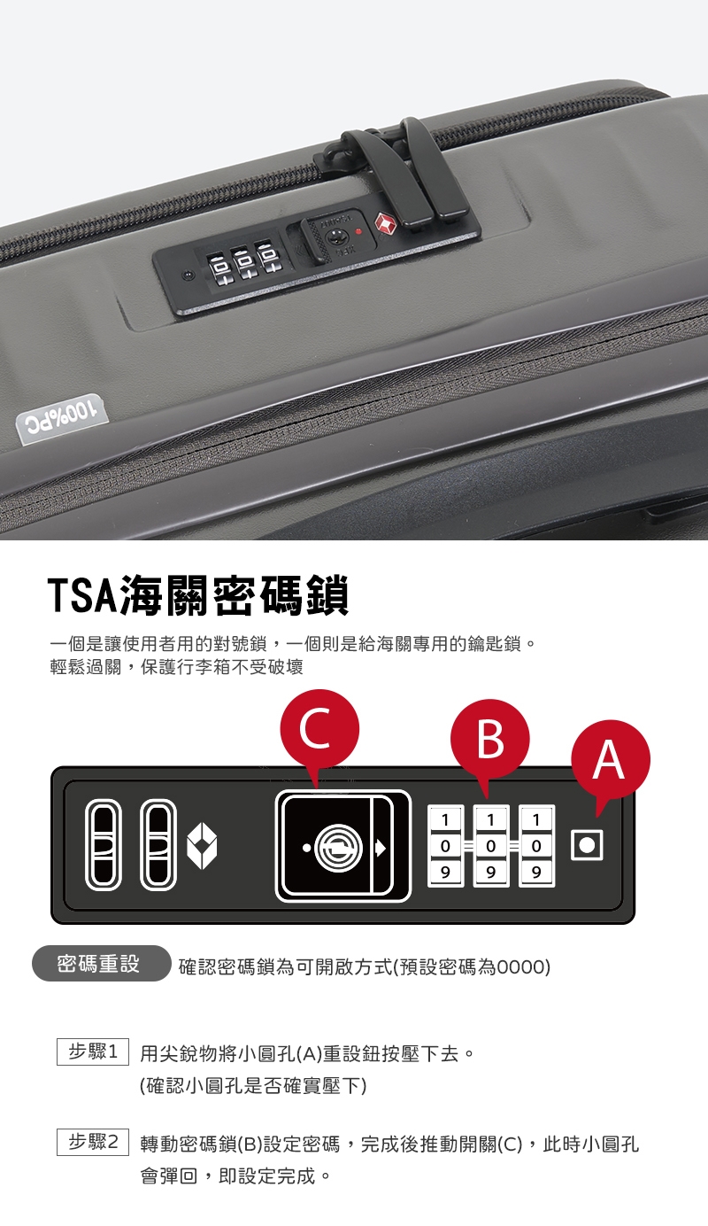 ● 專屬國際TSA海關三碼密碼鎖,保護更加分