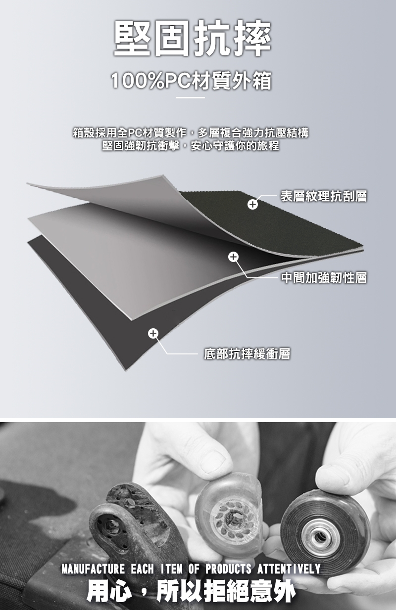 ● SGS國家核可實驗室,拉桿、行走、落下、裝載測試合格