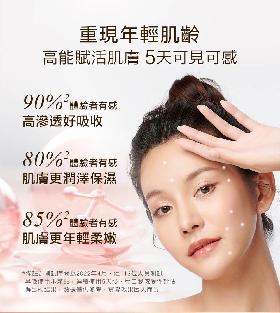 明清潔臉部後,取適量美肌萃均勻塗抹於全臉肌膚,輕柔按摩至吸收。