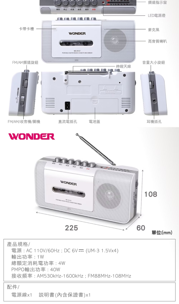 ★ 可播放錄音帶/收音機功能