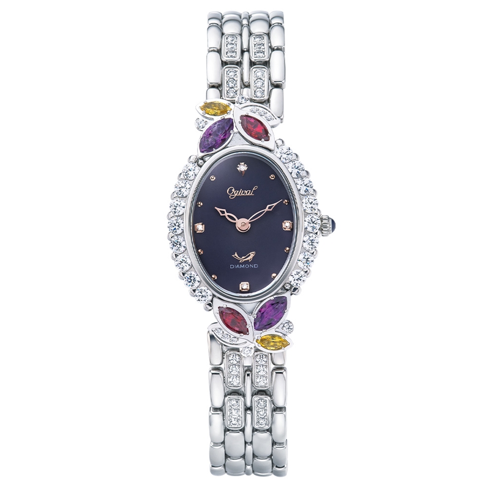 【Ogival 愛其華】 幸運虹彩天然寶石橢圓珠寶錶