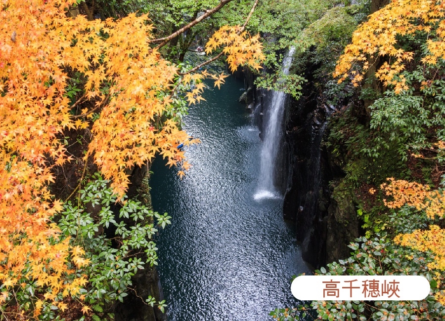 【第3天】 住宿飯店→萌熊電車Kumamon(上熊本站→北熊本站) →水前寺成趣園→賞楓高千穗峽~真名井瀑布→阿蘇國家公園•草千里(近距離眺望阿蘇火山) |