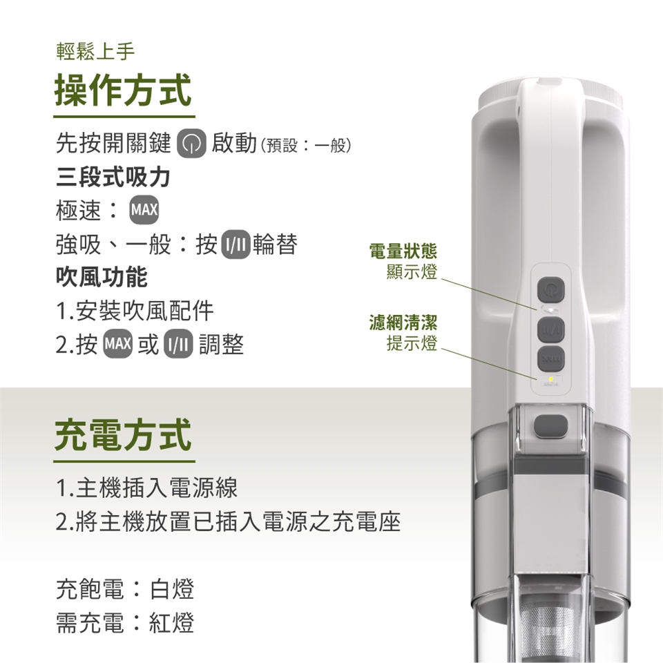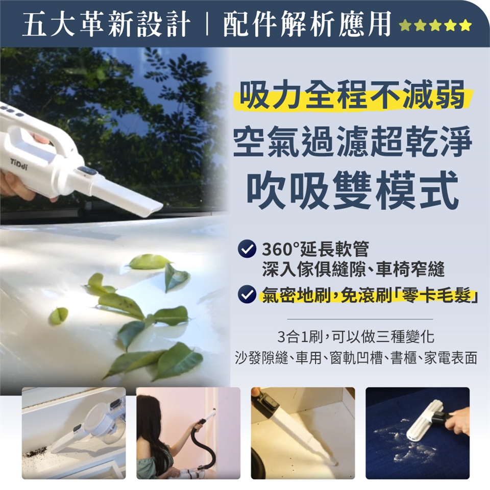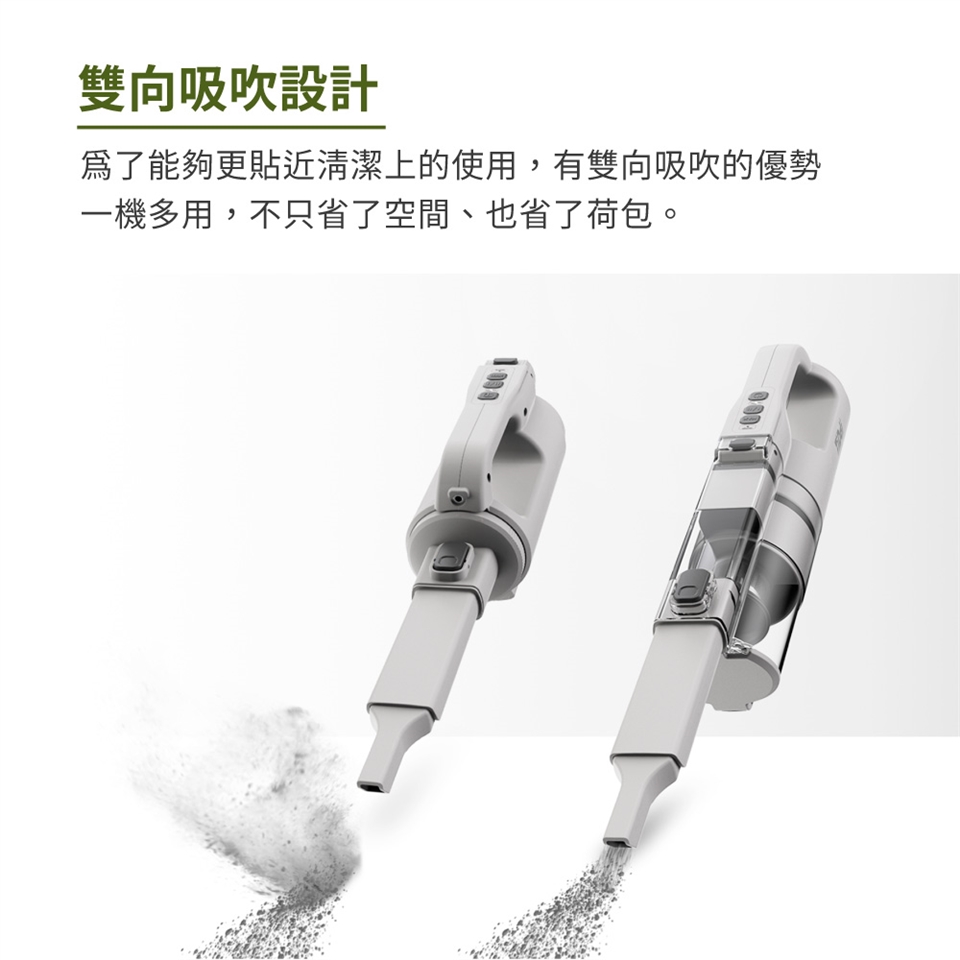 ✅ 吸 + 吹雙模式神切換 → 死角灰塵、車外落葉、縫縫餅乾屑,溫柔說再見 👋