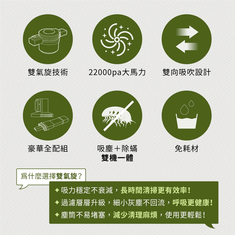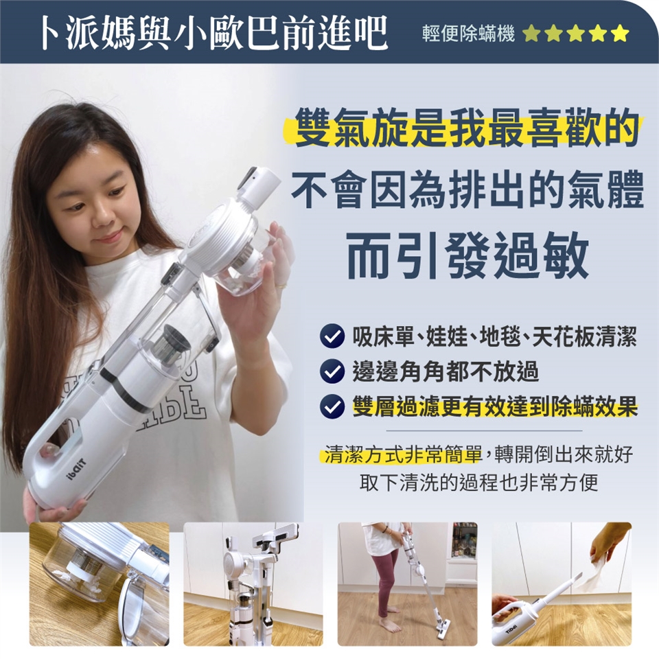 🛏️ 除蟎專家|「氣密床刷+雙氣旋」吸走99%蟎蟲屍體 → 敏感肌、寶寶床墊必備!