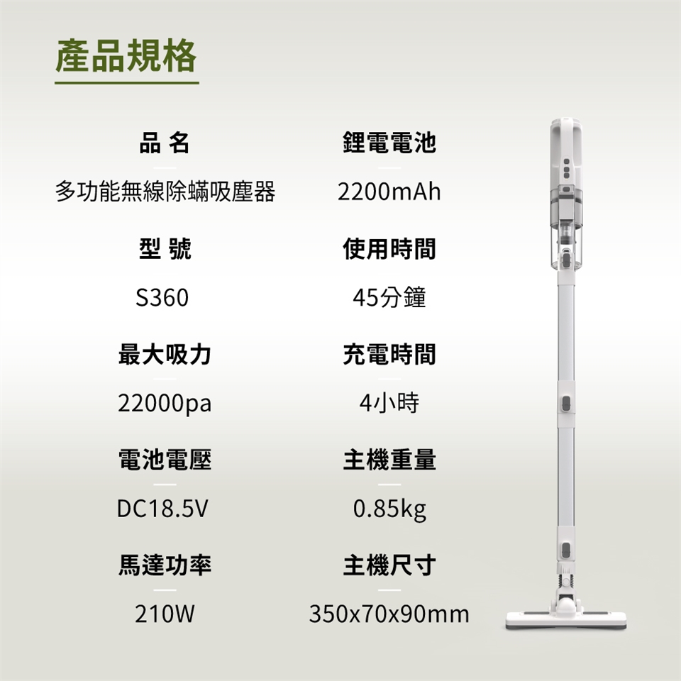 品名:多功能無線除蟎吸塵器(雙氣旋)
