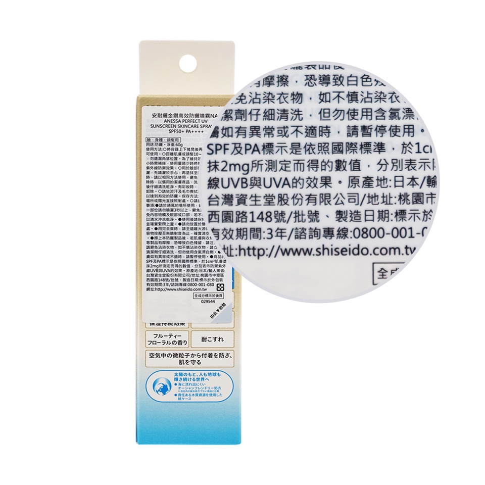 中文品名:SHISEIDO 資生堂 安耐曬金鑽高效防曬噴霧NA SPF50+ PA++++(60g)X2