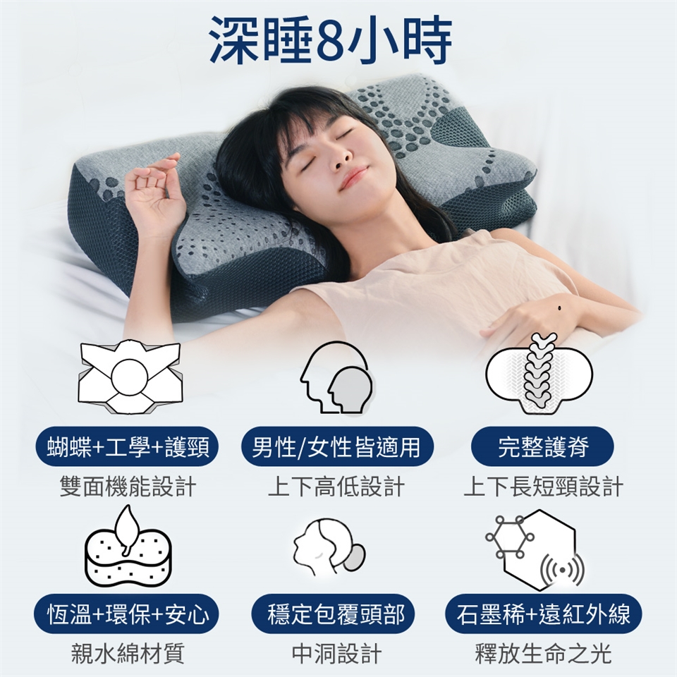 主商品:石墨烯親水棉蝴蝶枕x2件開放體驗,鑑賞期間內,若商品包含本體、配件、贈品、隨貨內外包裝(袋、盒、紙) ,已有缺件或損壞恕不退貨;若商品因消費者個人不當拆卸使用而造成破損、髒污或包裝不完整,以致無法再銷售者,請恕無法接受退貨;商品須維持原樣及無髒汙,商品表布一經下水或沾染異味(包括香水味),恕不接受退貨。