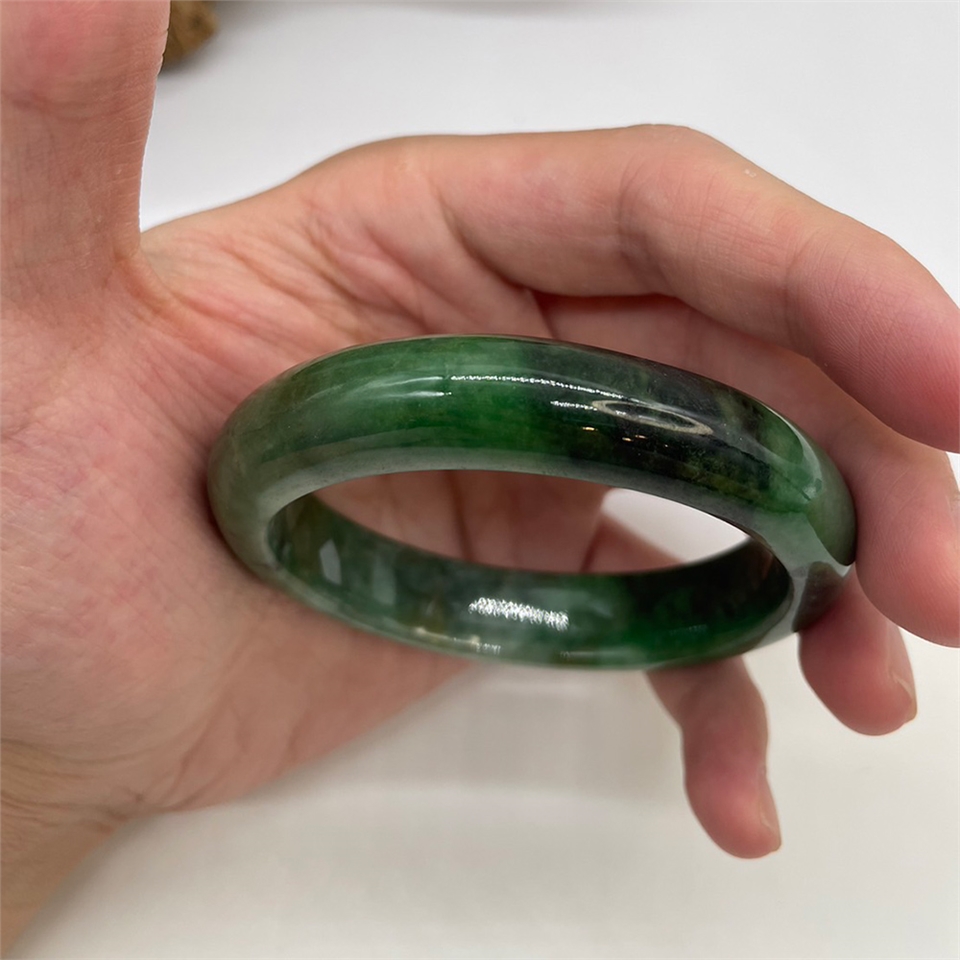 【肌容雪】緬甸天然A貨翡翠綠飄花翡翠特色手鐲 編號877(鐲寬58.2mm #19號)