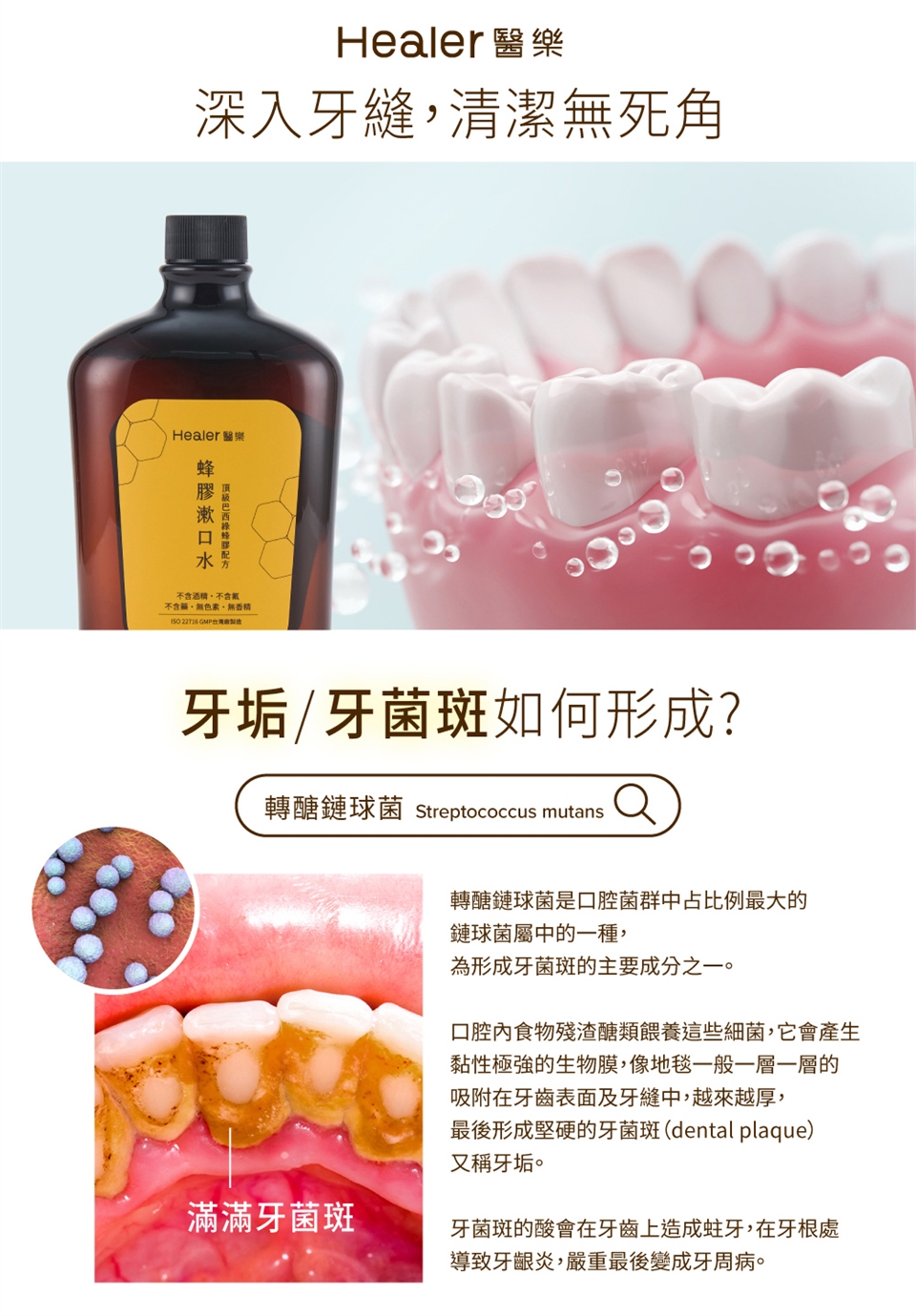 台灣製造,ISO 22716國際製程,結合大自然的力量與先進科學,為您的口腔提供全天候的健康守護。