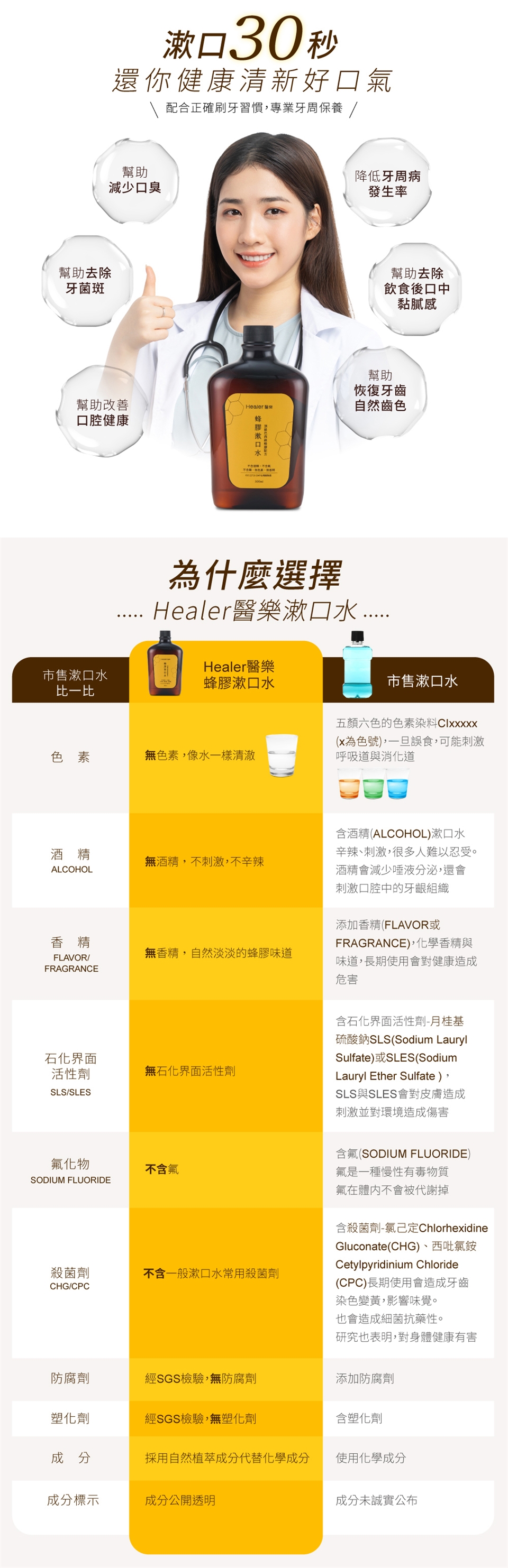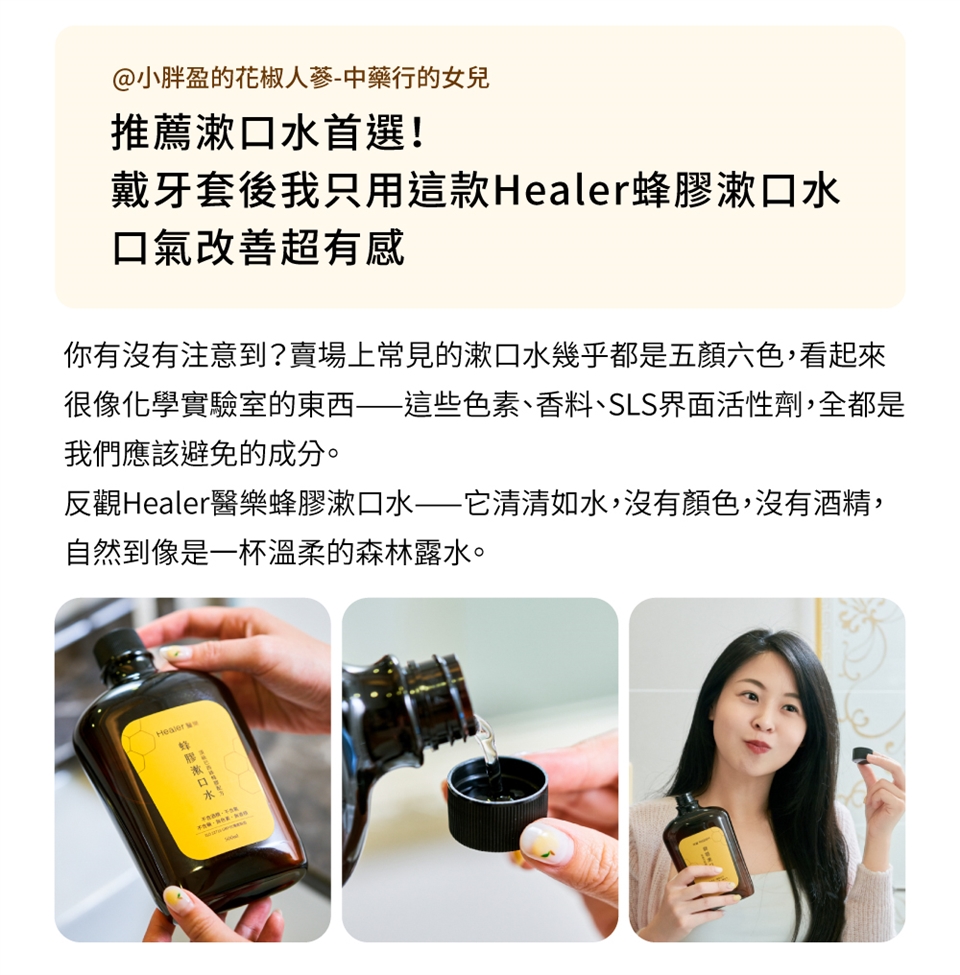 如果您使用過其他漱口水,覺得好辣、有很濃得化學味,一定不能錯過Healer醫樂蜂膠漱口水!