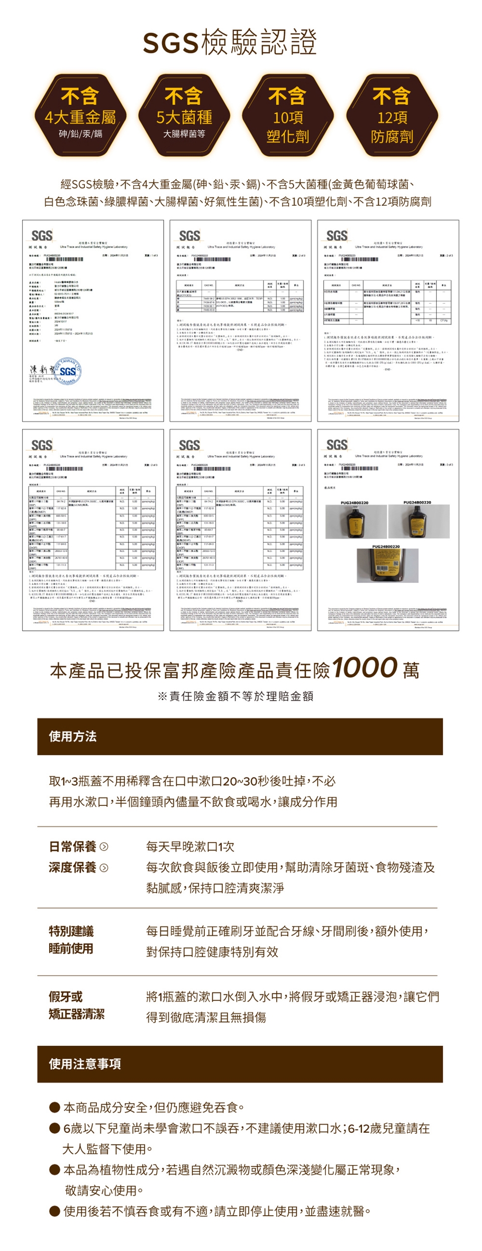 SGS檢驗認證,不含四大重金屬、不含五種菌、不含防腐劑、不含塑化劑。