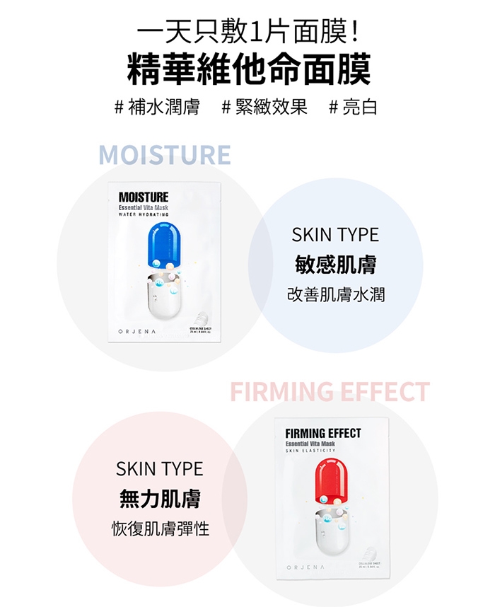 【ORJENA 雅潔娜】彈力緊緻維他命精華面膜(10片/盒)