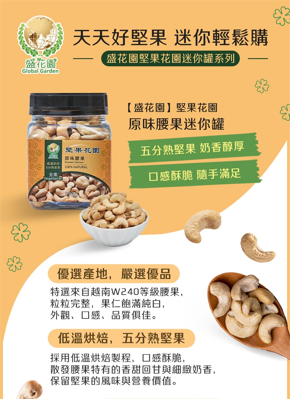 【盛花園】堅果花園原味腰果迷你罐(2罐/組,170g/罐)