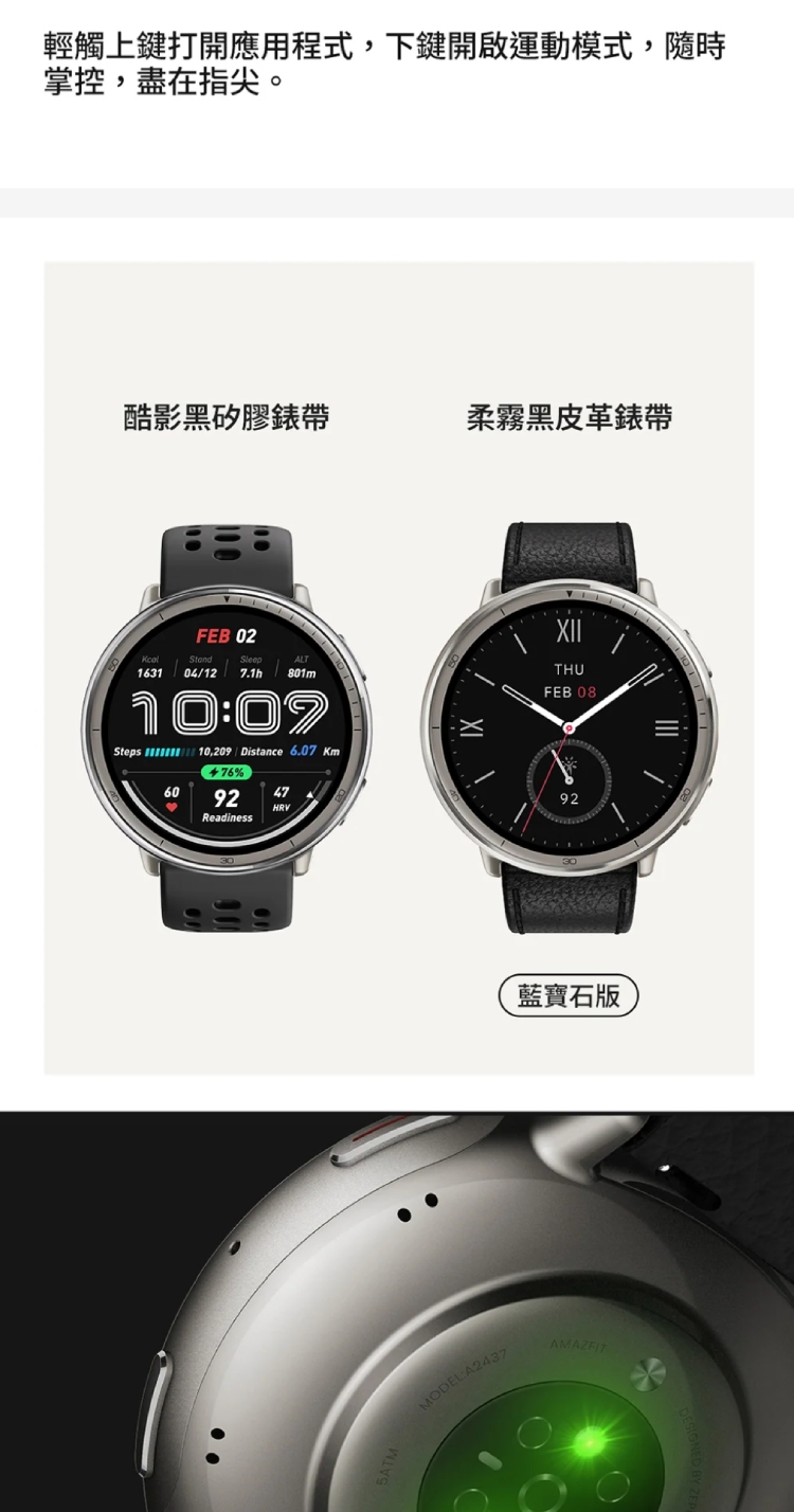 2.本產品和Zepp App不是醫療器材,不能用於醫療目的或作為診斷任何身體病狀的依據,檢測結果僅供參考。