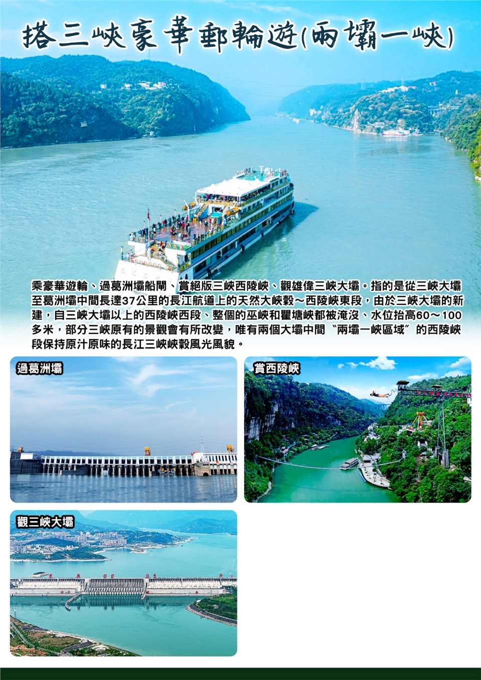 【第6天】 宜昌【搭三峽豪華郵輪遊(兩壩一峽)、特別安排-放翁懸崖景觀餐廳】-恩施【女兒城】 |