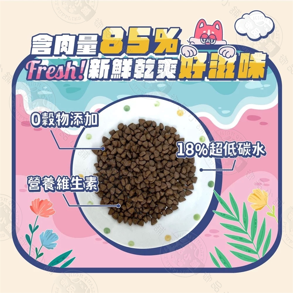✔ 18% 超低碳水,無穀配方,適合肉食天性