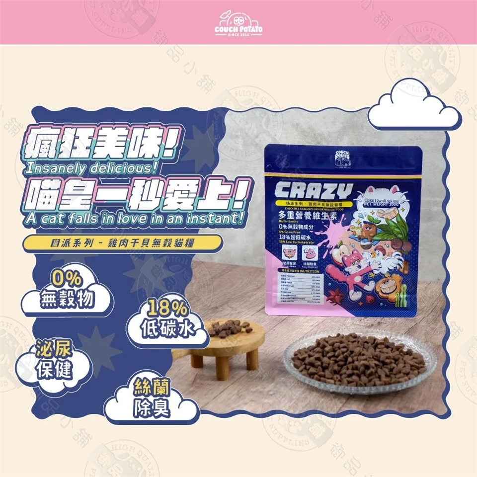 nu4PET 陪心寵糧 Crazy嗨派無穀貓乾糧 雞肉干貝 200g/1、2、6kg 無穀 低碳水 全齡貓 送贈品