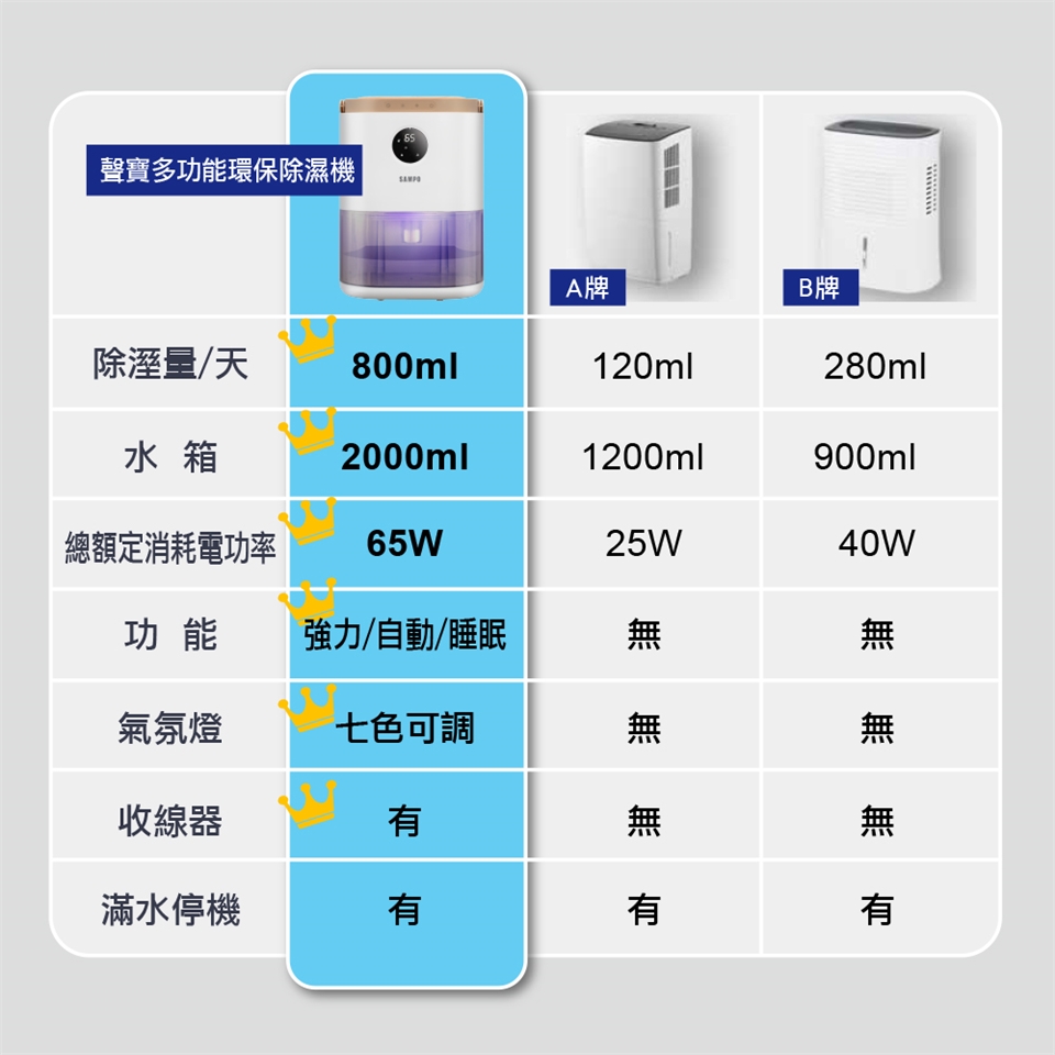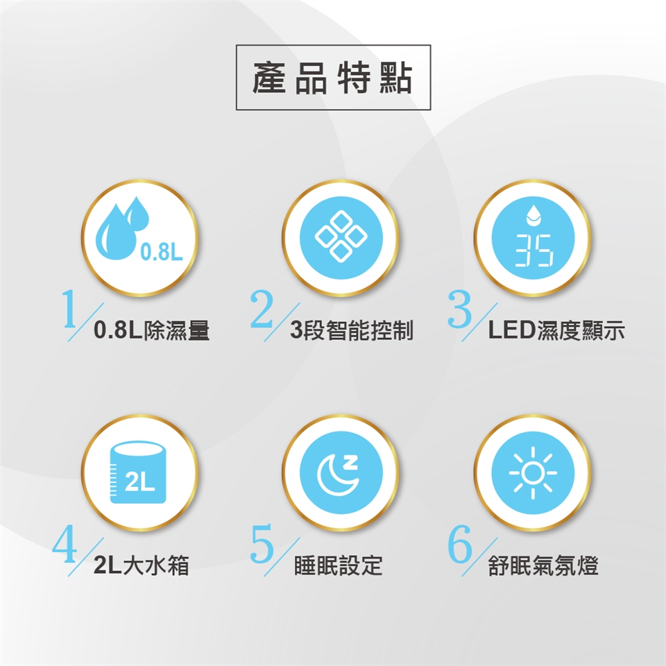 除濕功率:800ML/day(30度 80%RH)