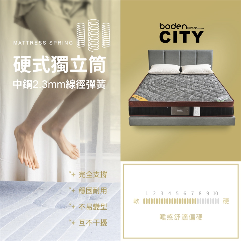 優質中鋼2.3mm硬式獨立筒彈簧,支撐力與耐用度更升級,提供您舒適的睡眠體驗!