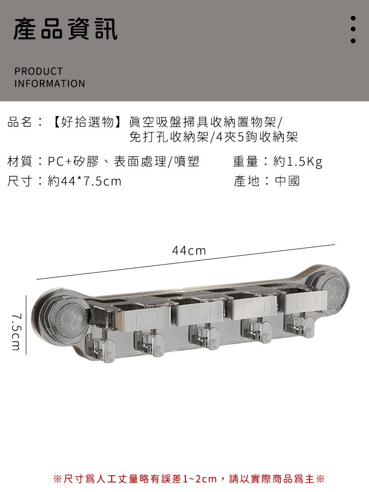 品名:【好拾選物】真空吸盤掃具收納置物架/