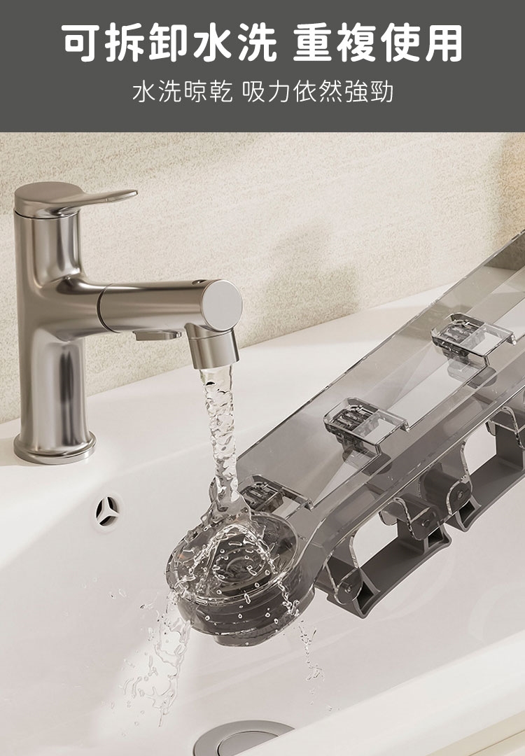 5.安裝前請保持牆面乾淨且無塵,撕開吸盤保護膜後, 貼牆面按壓緊實並排除空氣,順時針旋轉扭緊固定