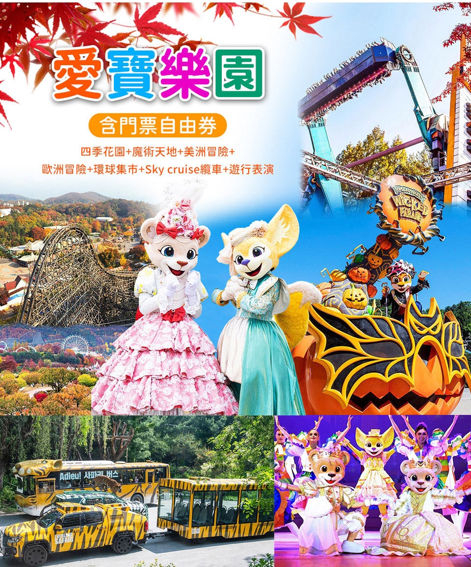 【第3天】 韓國民俗村─《繽紛愛寶樂園(門票自由券+四季花園+魔術天地+美洲冒險+歐洲冒險+環球集市+Sky cruise纜車+遊行表演) |