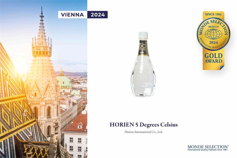 2024年HORIEN 5度C天然無氣泡蘇打水,再次榮獲比利時布魯塞爾世界品質評鑑大賞MONDE SELECTION金獎肯定,為產品質量做出了頂級評鑑與認可。