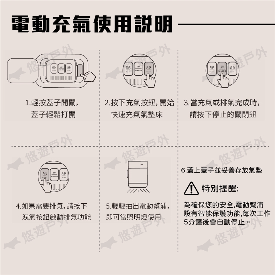 👉專利內鍵抽取式幫浦,無線充氣PUMP,充洩氣一鍵完成