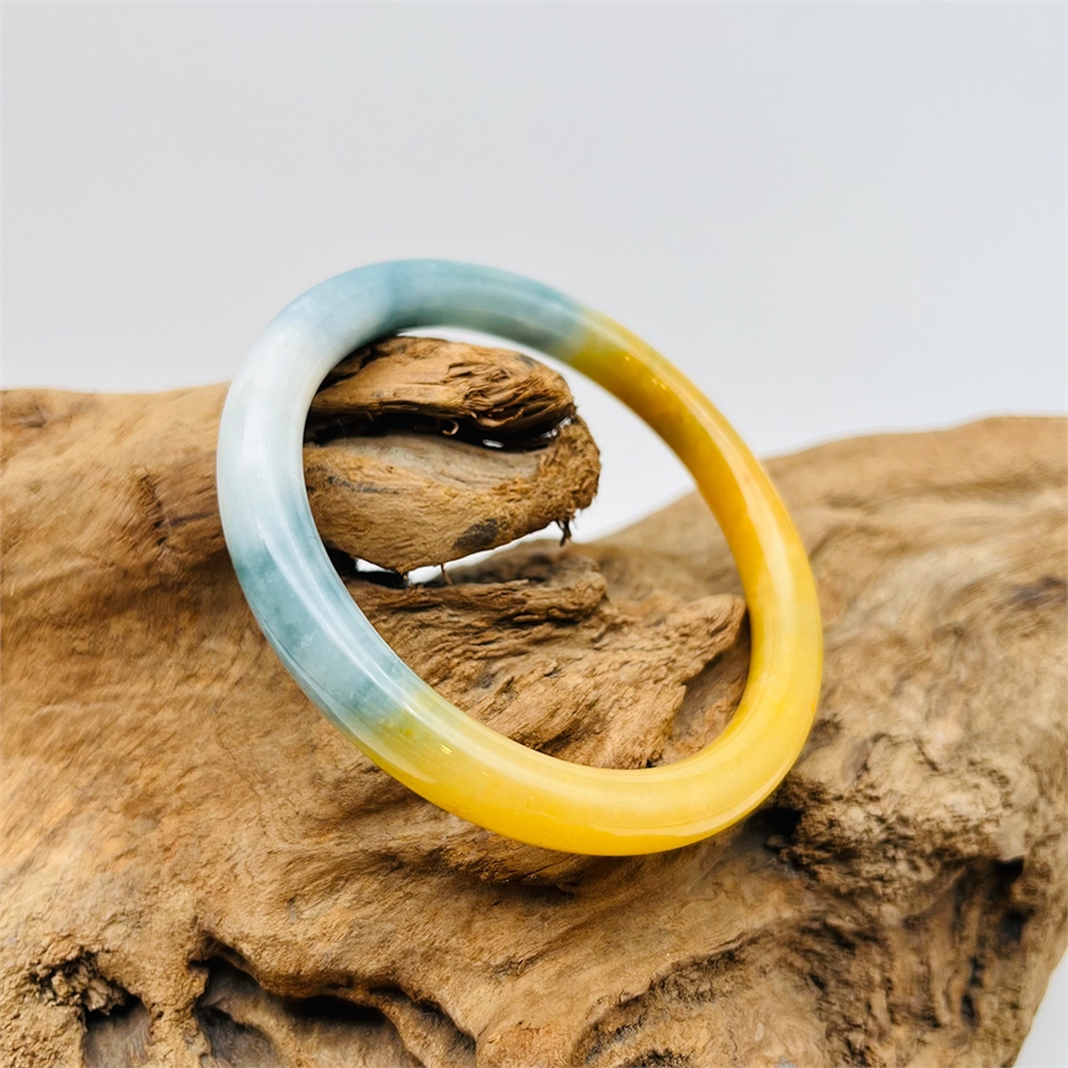 【肌容雪】緬甸天然A貨翡翠黃翡綠飄花翡翠手鐲 編號916 (鐲寬57mm #18.5號)