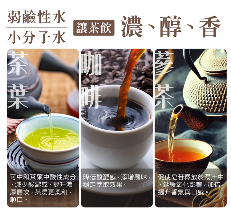 弱鹼性小分子水讓茶飲&咖啡口感更順口