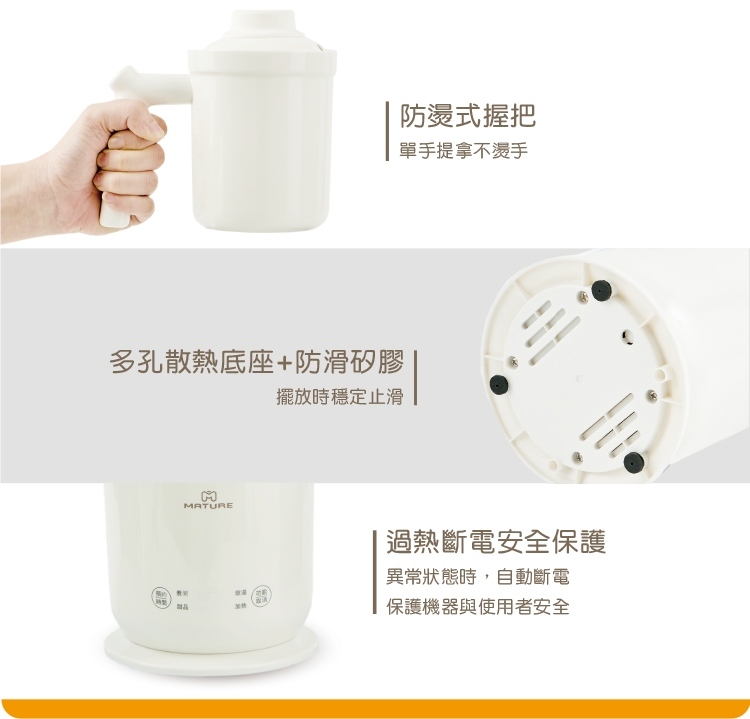 商品材質:杯體含蓋-陶瓷、杯蓋隔熱套-矽膠、機身-PC塑膠、PP塑膠、量杯-PP塑膠、濾網-304不鏽鋼