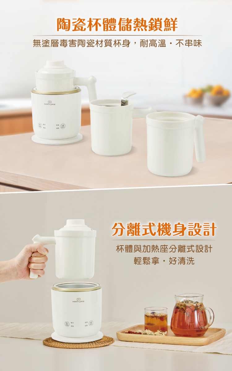 無塗層陶瓷材質杯體儲熱鎖鮮,給您適合的溫度