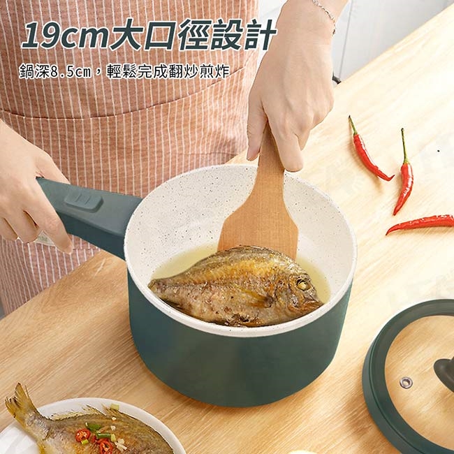 ◎19cm大口徑搭配8.5cm鍋深,輕鬆完成翻炒煎炸。