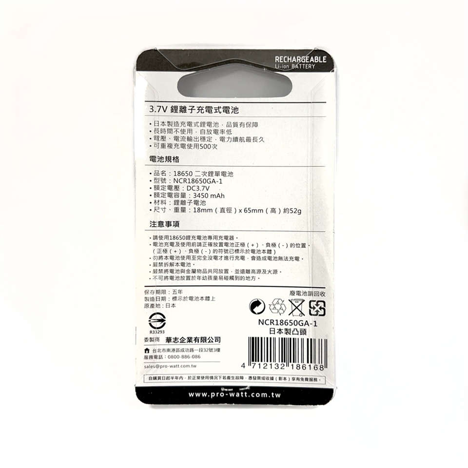 ◆品名:18650 二次鋰電池 1入