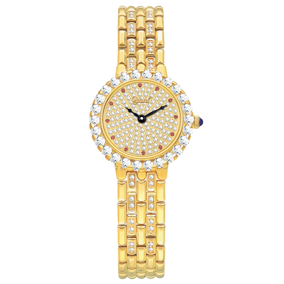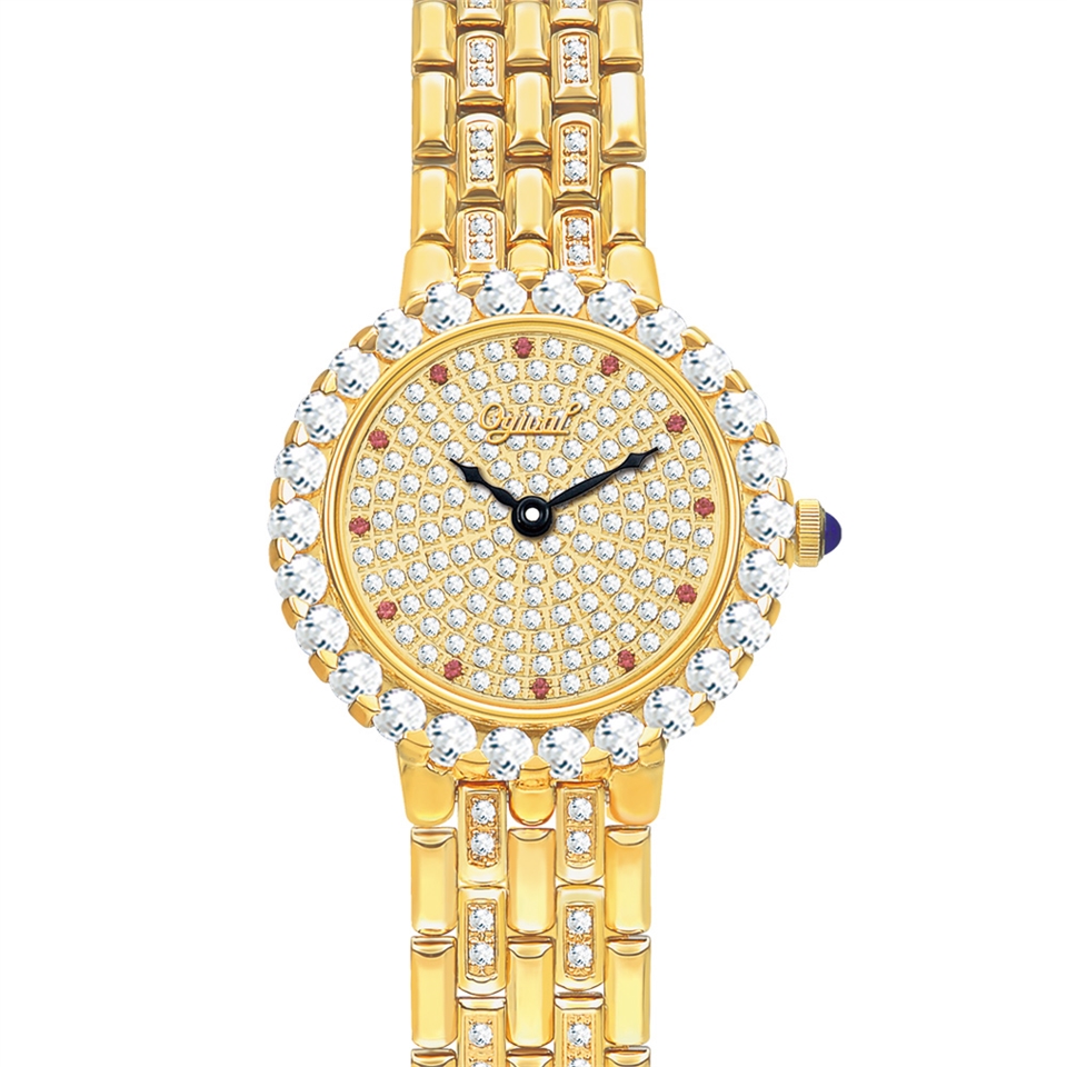 【Ogival 愛其華】冷翡翠系列 滿天星珠寶女錶 金色