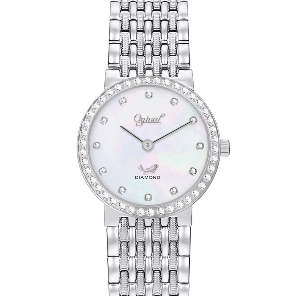 【Ogival 愛其華】極致珍愛真鑽時尚腕錶 銀白珍珠貝