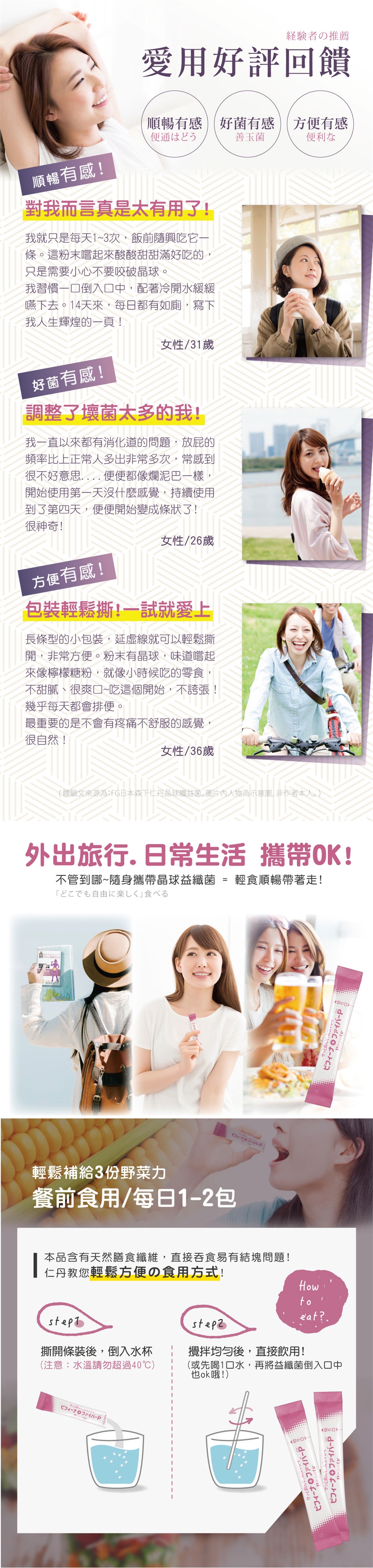 每日1-2包配冷開水(勿超過40℃)於飯前食用,可添加於牛奶、果汁或茶等飲品飲用,內有微小“晶球”顆粒請勿咬破,多食無益。