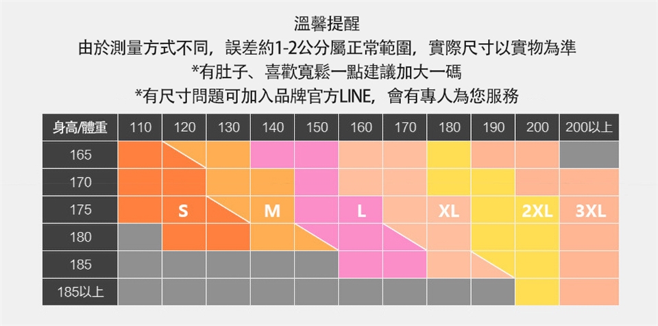 供應尺寸:L-3XL