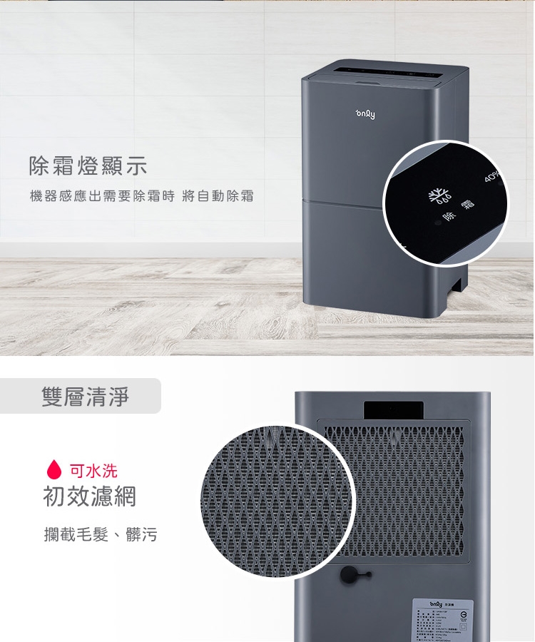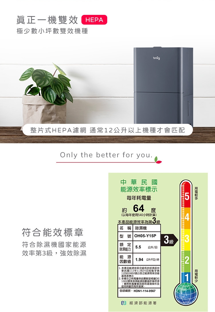 ※ 本款除濕機清淨能力,依標準規範實測CASR值為1.12,因以除濕為主,附加清淨為輔,並無單獨清淨,所以無另行申請清淨機能效分級標示。