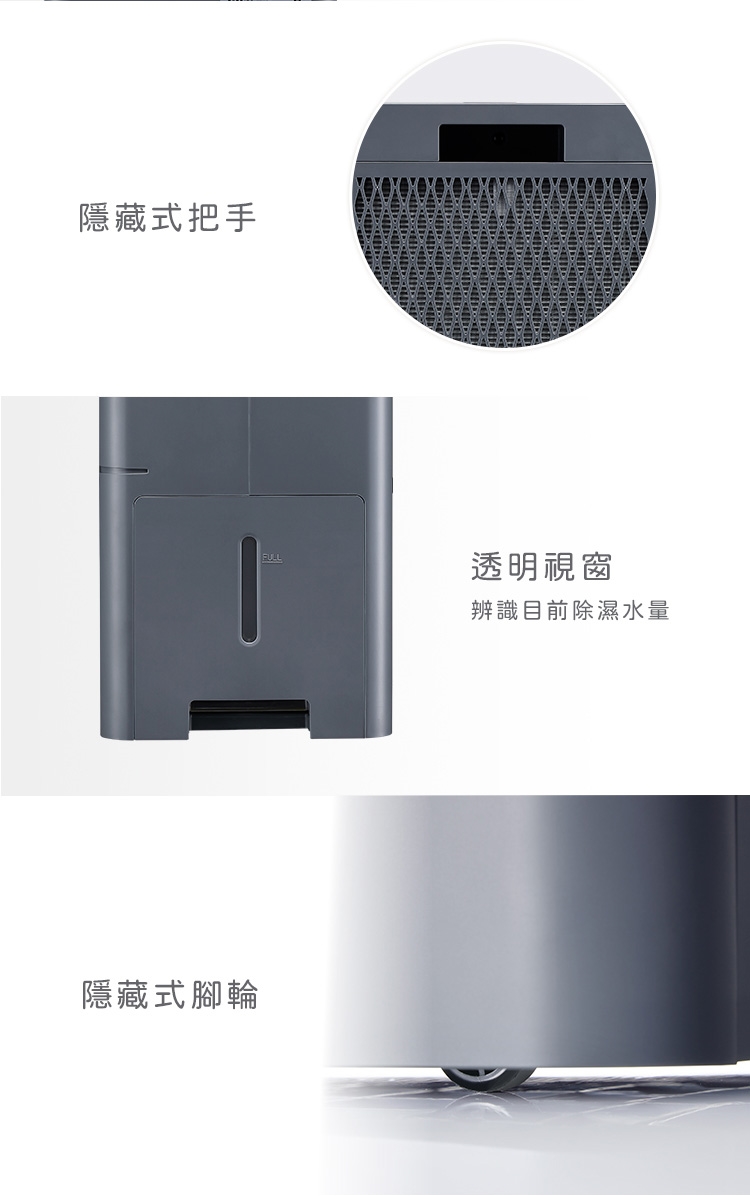 ※ 本款除濕機清淨能力,依標準規範實測CASR值為1.12,因以除濕為主,附加清淨為輔,並無單獨清淨,所以無另行申請清淨機能效分級標示。